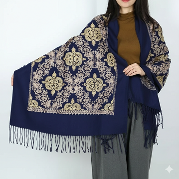 Its generous length provides versatile styling options — wear it draped over your shoulders, wrapped around your neck, or styled as a shawl. Finished with delicate fringe edges, this scarf combines artisanal craftsmanship with a soft, luxurious feel. A perfect accessory to enhance your wardrobe and an ideal gifting choice.